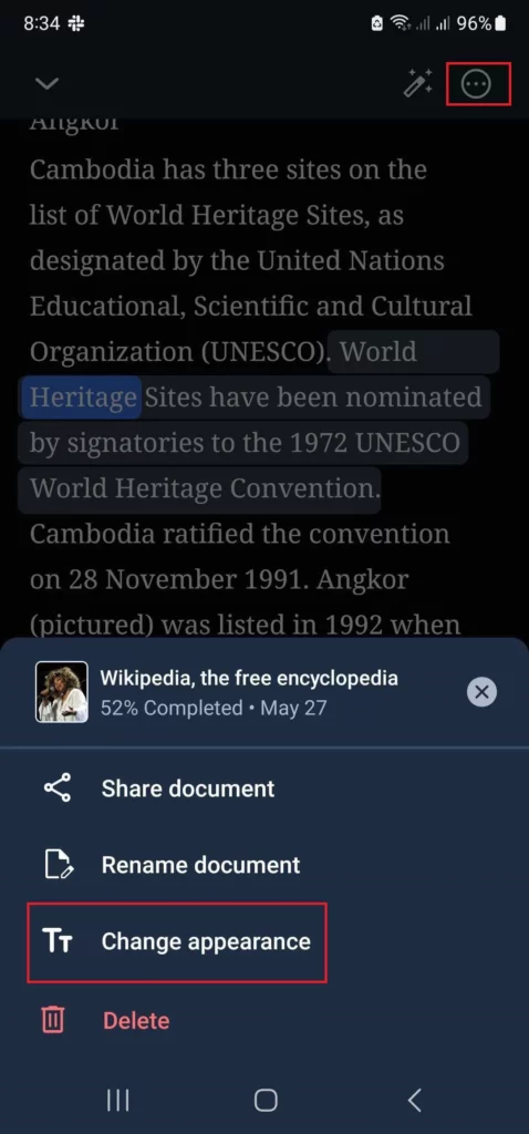 - Tap the Ellipsis circle icon (encircled with three dots) at the top right-hand side of the screen. Then, select Tt Change Appearance