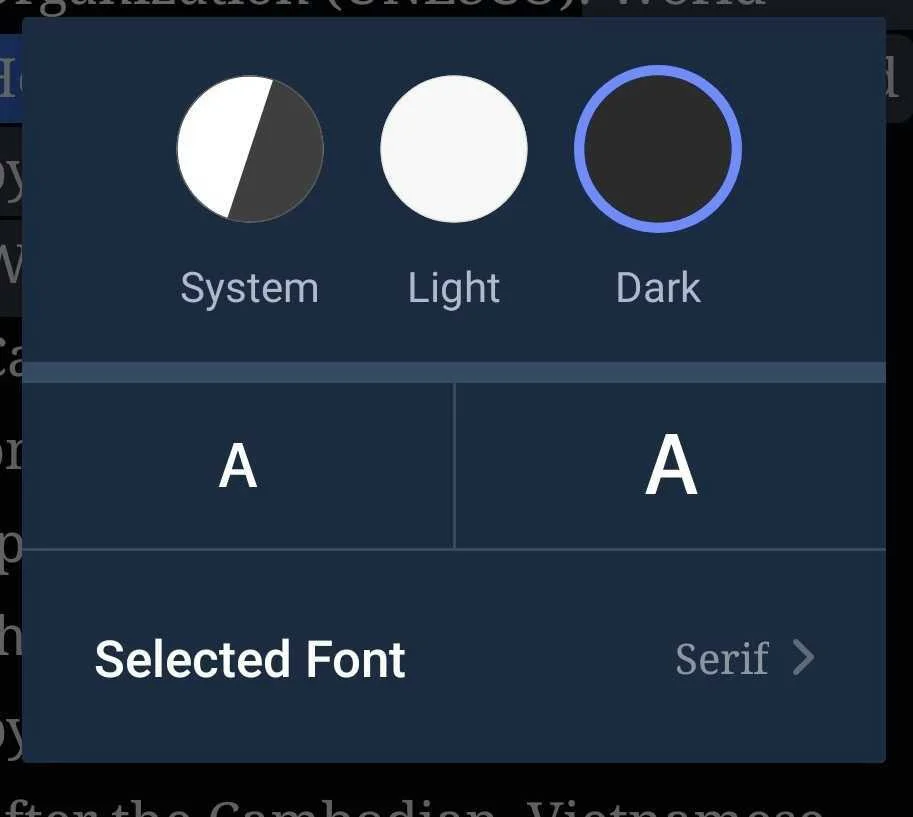 3. Tap Selected Font to choose a different font. Or tap between the small or big T to change your font size