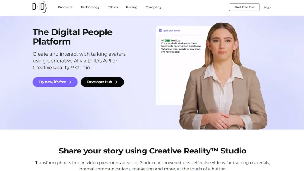 D-ID is a video production platform specializing in digital avatars with a strong focus on privacy and security. It boasts capabilities like deepfake identification and data anonymization, safeguarding critical video content. Given its emphasis on confidentiality, D-ID is particularly suited for sectors with rigorous privacy demands, including healthcare and finance.