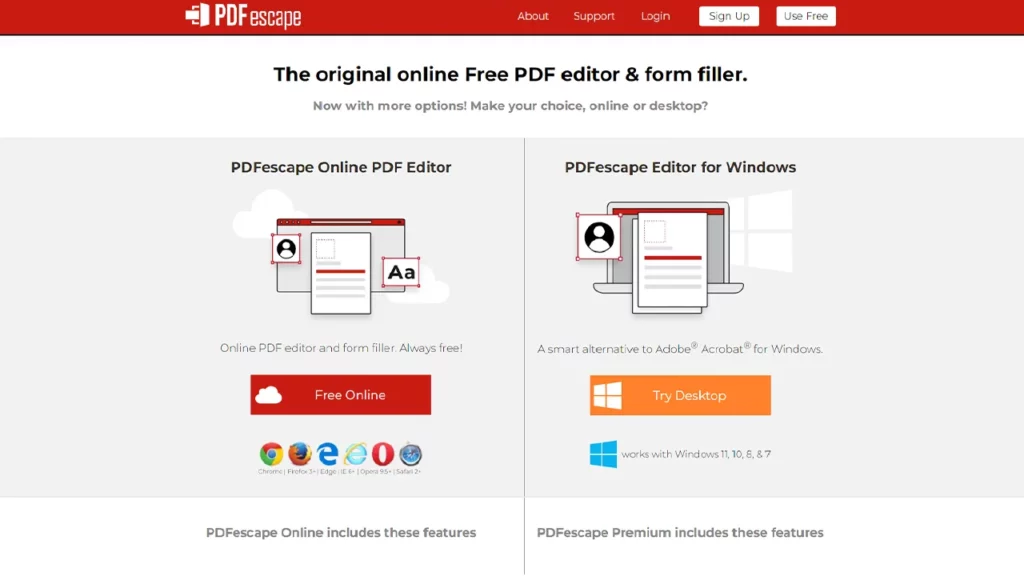 PDFescape je <a href="https://speechify.com/blog/audio-editor-online/" title="Audio Editor Online: A How To">online editor PDF a vyplňovač formulářů, který je dostupný ve verzi zdarma i prémiové. Uživatelé mohou upravovat, anotovat, vytvářet formuláře a další přímo v webovém prohlížeči. Jeho snadno použitelné rozhraní zajišťuje, že i začátečníci mohou snadno manipulovat s PDF. Platforma, která nabízí jak bezplatnou verzi, tak prémiovou verzi za 2,99 $ měsíčně, také nabízí stahovatelnou desktopovou verzi pro ty, kteří preferují práci offline.