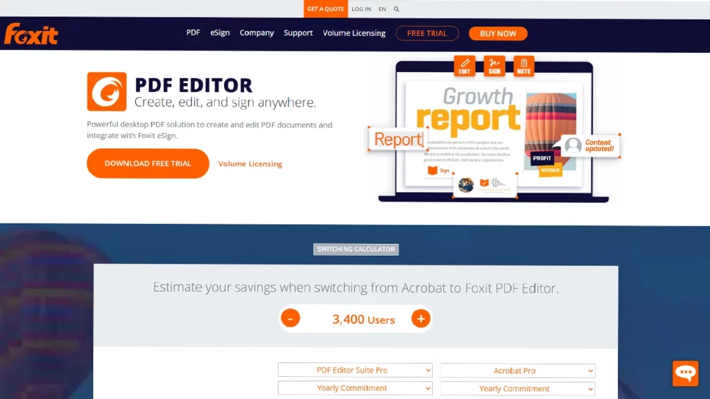 Foxit PDF Editor (dříve známý jako Foxit PhantomPDF) je komplexní řešení pro vytváření, úpravu a zabezpečení PDF. Nabízí širokou škálu nástrojů, které vyhovují jak jednotlivcům, tak firmám. Funkce jako spolupráce na recenzích, tvorba formulářů a pokročilé bezpečnostní možnosti ho odlišují od ostatních. Jeho uživatelsky přívětivé rozhraní a rychlý výkon zajišťují efektivitu a produktivitu. Navíc, Foxit PDF Editor stojí $13.25/měsíc, účtováno ročně.