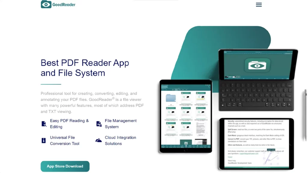 GoodReader je robustní nástroj pro správu PDF navržený především pro iOS zařízení s cenou $5.99/měsíc. Umožňuje nejen čtení a anotaci PDF, ale také vyniká ve správě souborů, synchronizaci s různými cloudovými službami a dokonce i rozbalování archivů. Jeho přizpůsobivost různým úkolům, od čtení velkých knih po úpravu dokumentů, z něj činí oblíbený nástroj mezi uživateli iPadu a iPhonu. V průběhu let byly jeho funkce neustále vylepšovány, což zajišťuje prémiový zážitek.