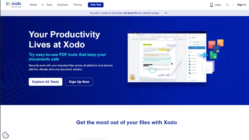 Xodo je bezplatný, multiplatformní nástroj pro práci s PDF, který klade důraz na spolupráci a snadné použití. Uživatelé mohou snadno číst, anotovat, podepisovat a sdílet PDF. Je obzvláště chválen pro svůj plynulý uživatelský zážitek na mobilních zařízeních, umožňující anotace a úpravy na cestách. Díky integraci s cloudem zajišťuje plynulý pracovní tok napříč různými platformami a zařízeními. Navíc uživatelé mohou upgradovat svůj plán za pouhých 9 $ měsíčně pro prémiové funkce.