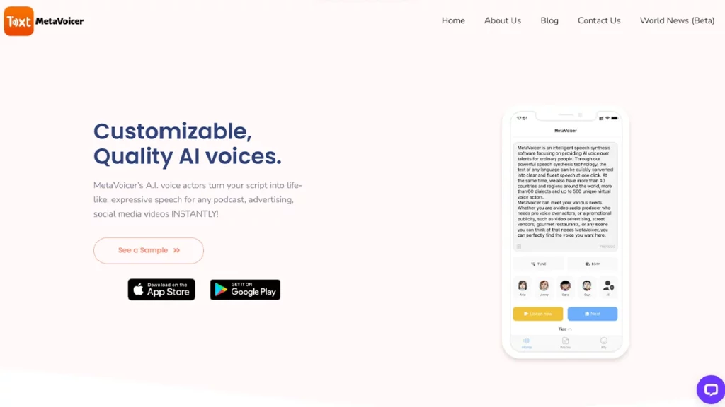 MetaVoicer tilbyder avancerede tekst-til-tale løsninger med fokus på at skabe medrivende lydoplevelser. Dens omfattende stemmebibliotek garanterer alsidighed i lydoutput.