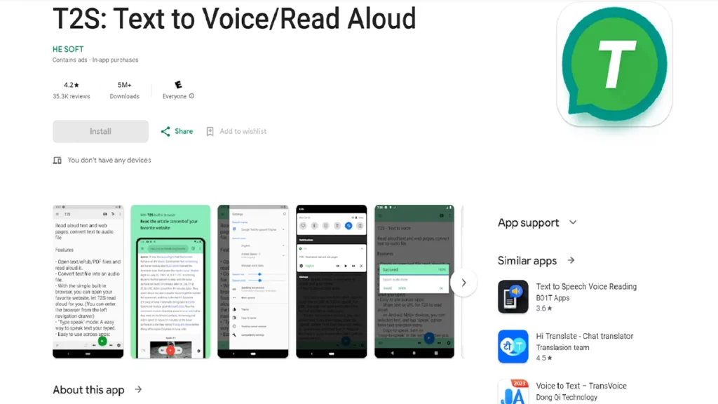 T2S skiller sig ud for sin enkelhed og effektivitet i at konvertere tekst til tale. Den er designet til brugere, der foretrækker en direkte og problemfri tilgang til lydkonvertering.