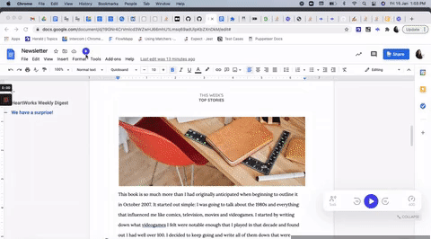 Hier ist eine kleine Demo ohne Audio, wie es in Google Docs funktioniert -