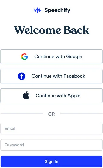 4. Ahora, puedes iniciar sesión en tu perfil existente con Speechify o crear un nuevo inicio de sesión