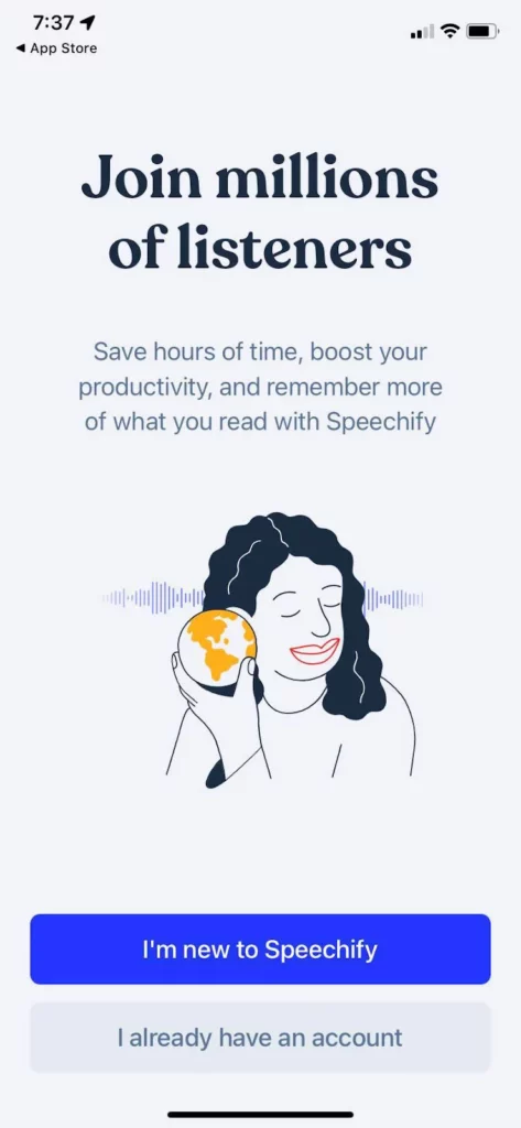 Open vervolgens de app en beantwoord een paar vragen om je Speechify-ervaring aan te passen. Voorbeeldscreenshots hieronder: