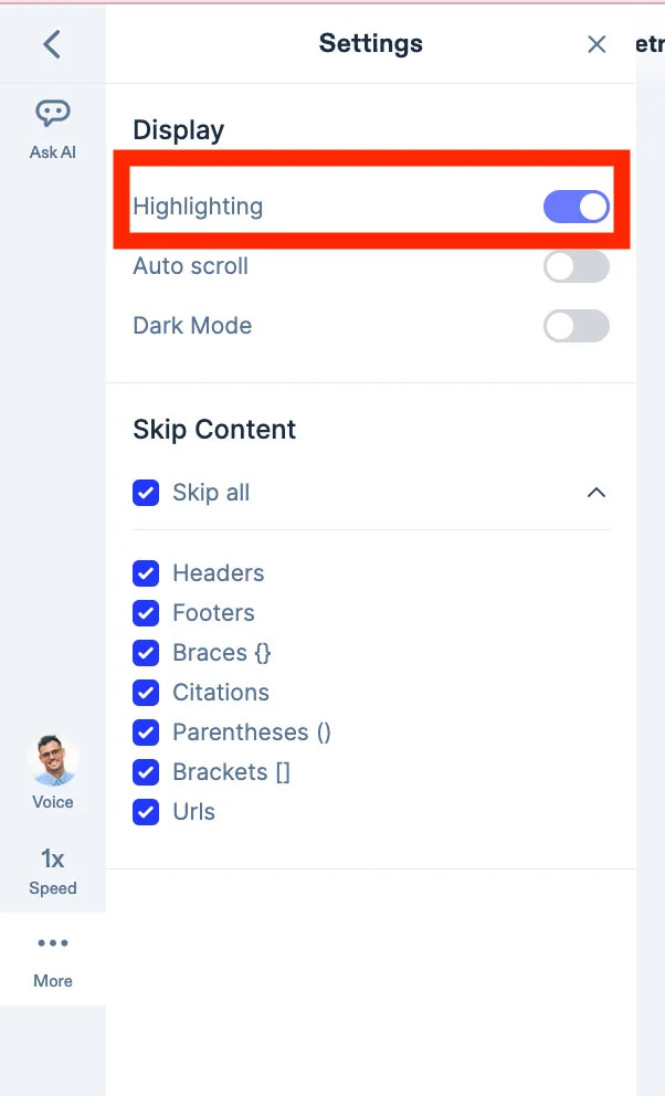 您可以在PC、台式机或笔记本电脑上的Speechify库中,让网页应用在朗读文档时高亮显示单词。