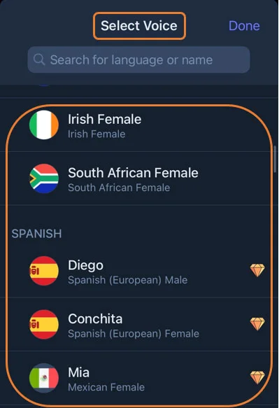 Speechify 可以用列出的任何語言進行閱讀。假設您有一段用 意大利語 撰寫的文本 - 如果選擇了意大利語,它將用意大利語閱讀。如果您使用意大利語音來閱讀英文文本,應用程式將用意大利語音/口音來閱讀英文。