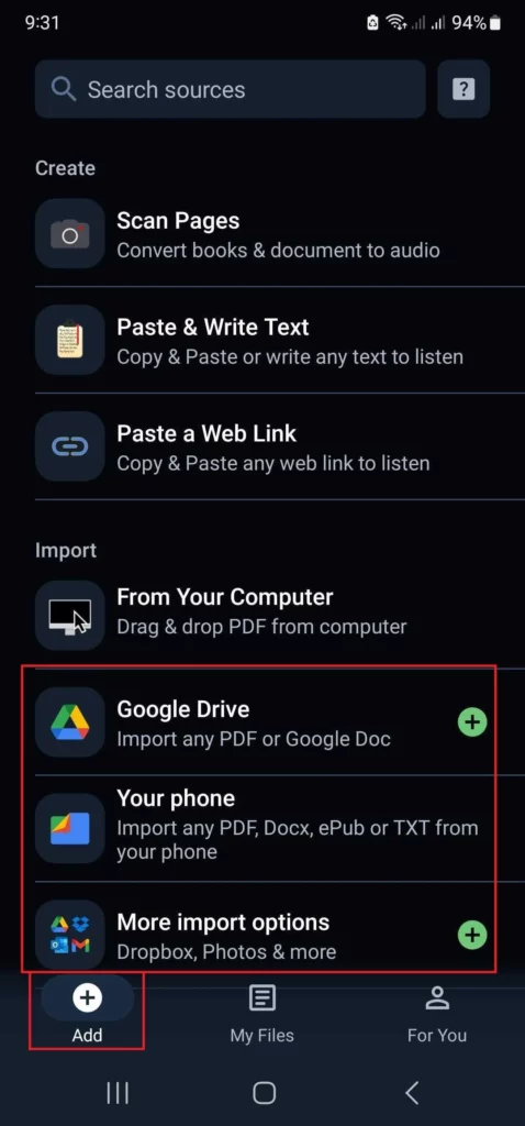 4. The PDF will upload to your library as a listening document and it will play automatically